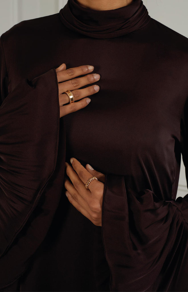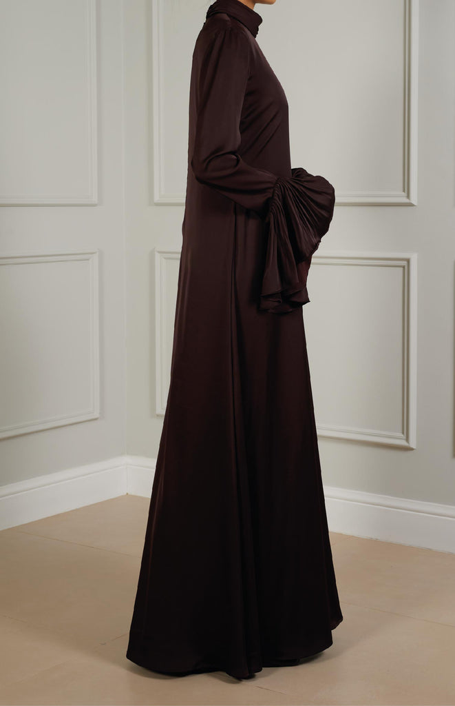 Sophisticated straight silk kaftan with intricately pleated sleeves, offering a timeless and elegant look for any occasion