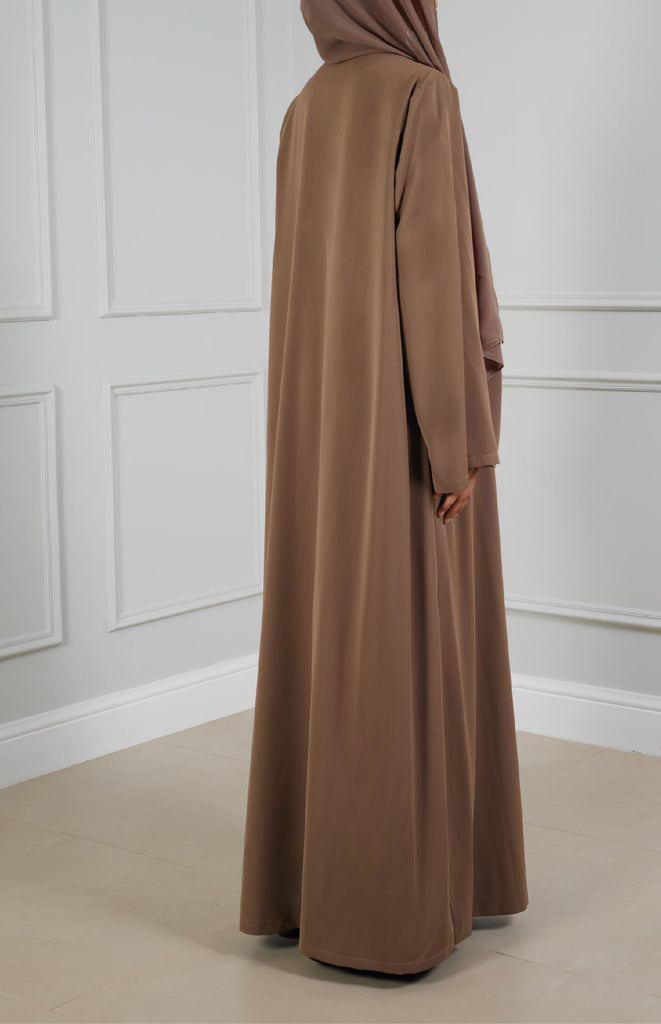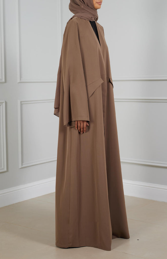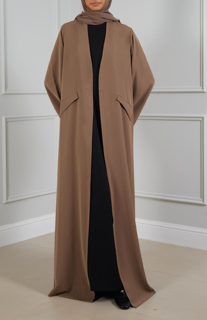 Everyday elegance: Simple straight-cut abaya with two flap pockets, crafted from lightweight fabric for comfort and practicality