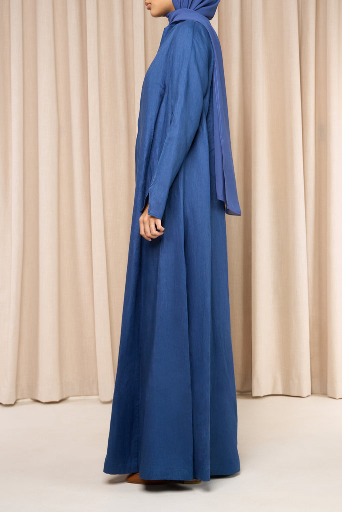 Sadaf – A shimmering pearl, rare and refined. A breezy linen abaya featuring subtle small slits on the sleeves for added movement and style. Lightweight and breathable, it offers elegance and comfort perfect for warm weather occasions.