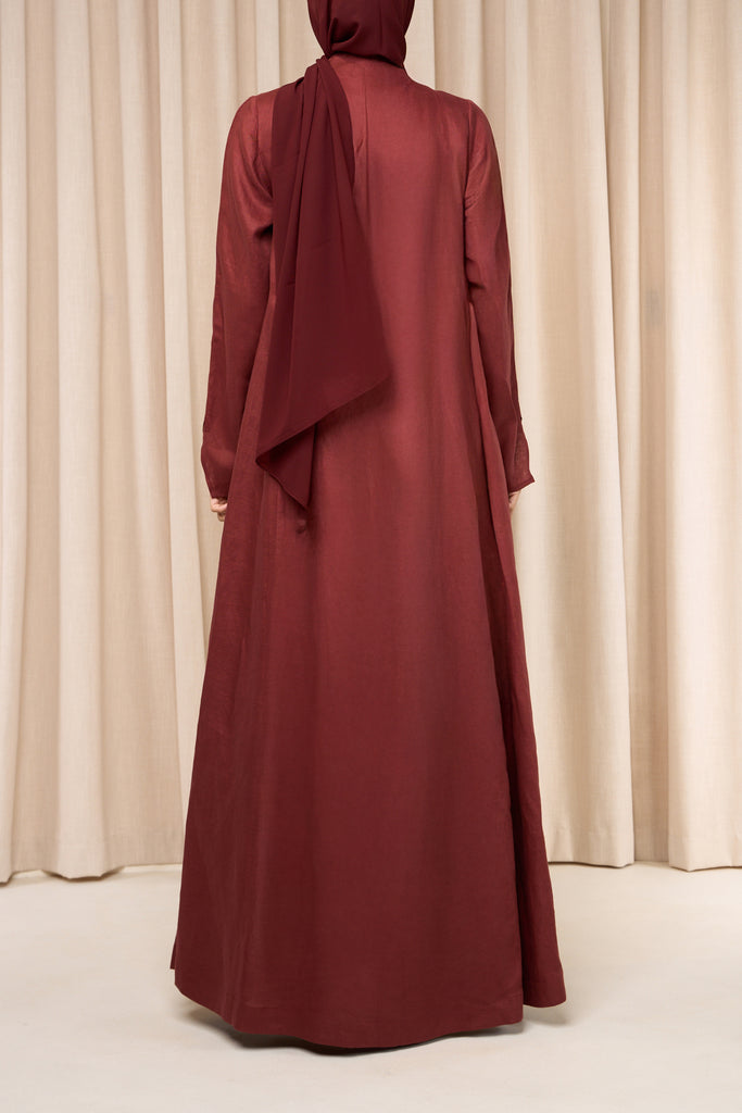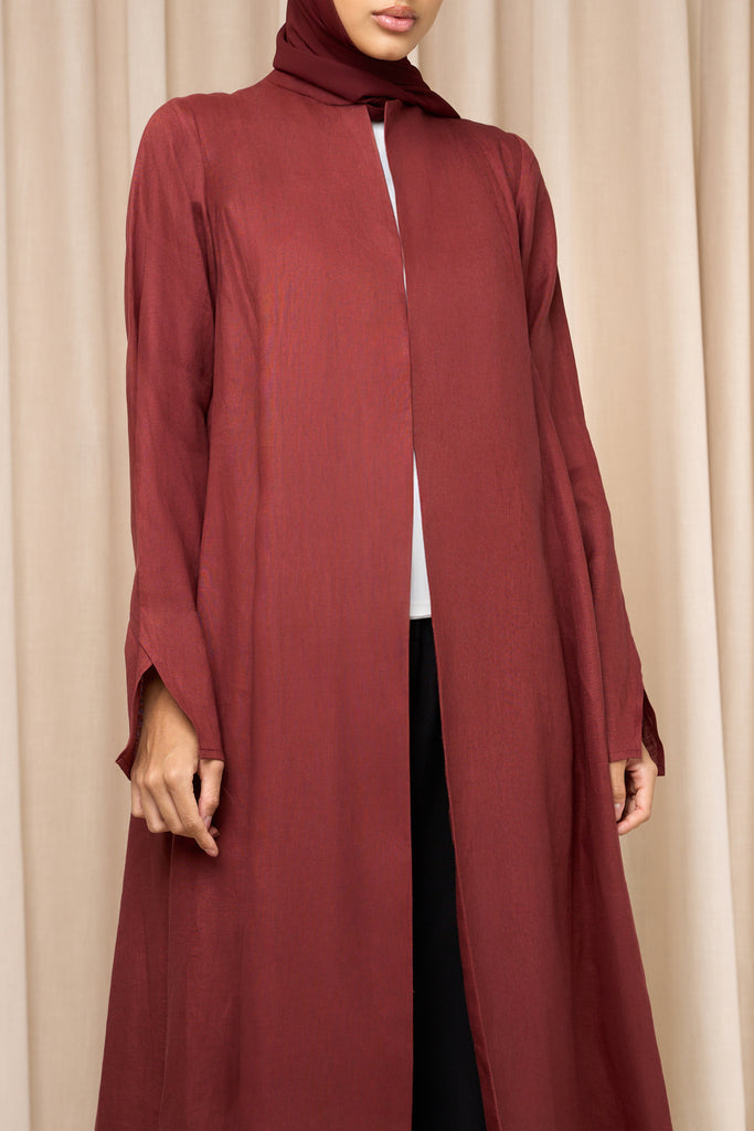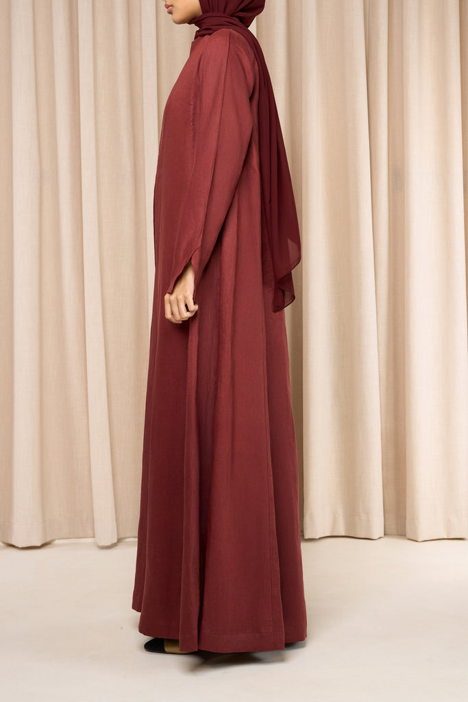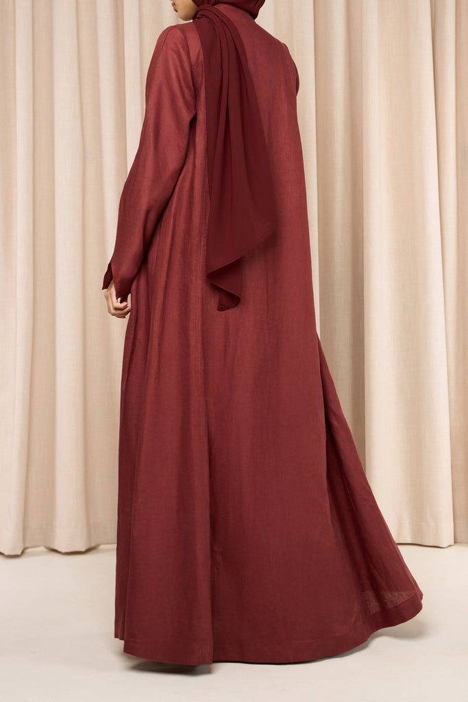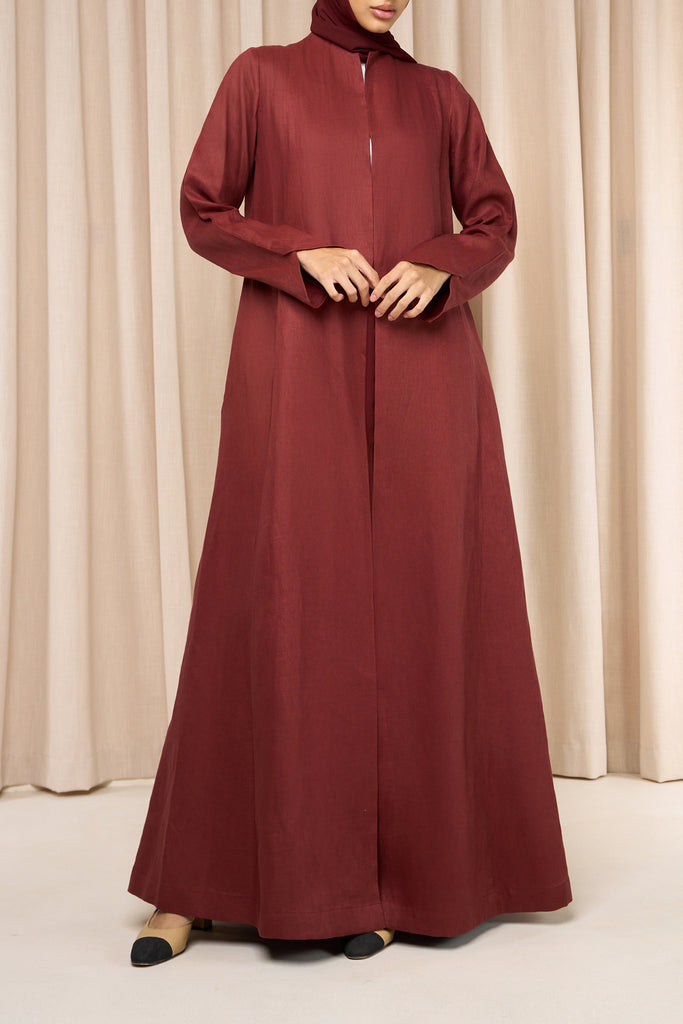 Sadaf – A shimmering pearl, rare and refined. A breezy linen abaya featuring subtle small slits on the sleeves for added movement and style. Lightweight and breathable, it offers elegance and comfort perfect for warm weather occasions.