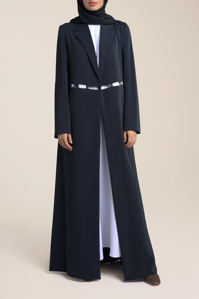 A lightweight abaya that can be worn anytime of the day. The holes in the front of the abaya gives an elegant and simple touch to the look.