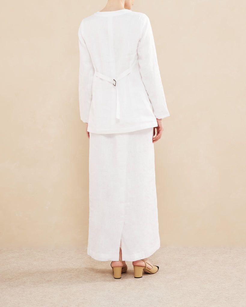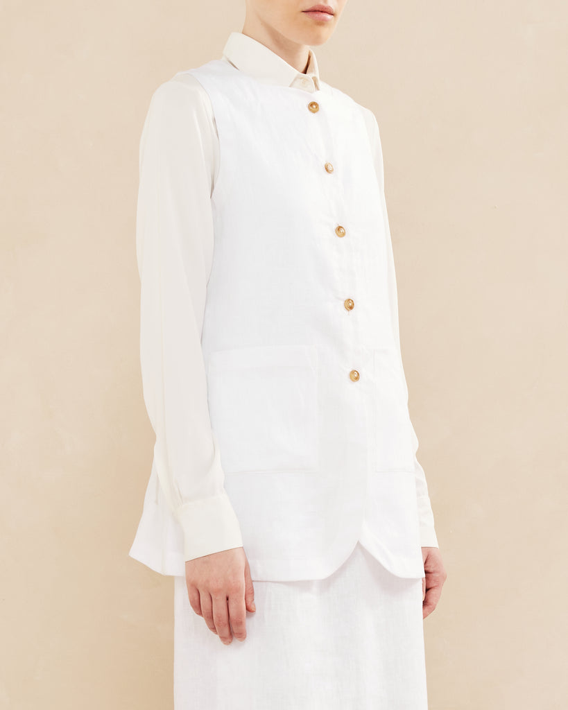 An elegant buttoned vest and matching skirt, ideal for a clean and classic ensemble.