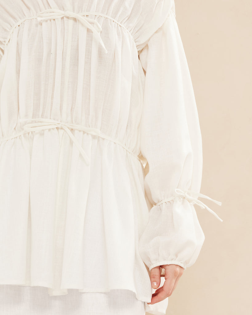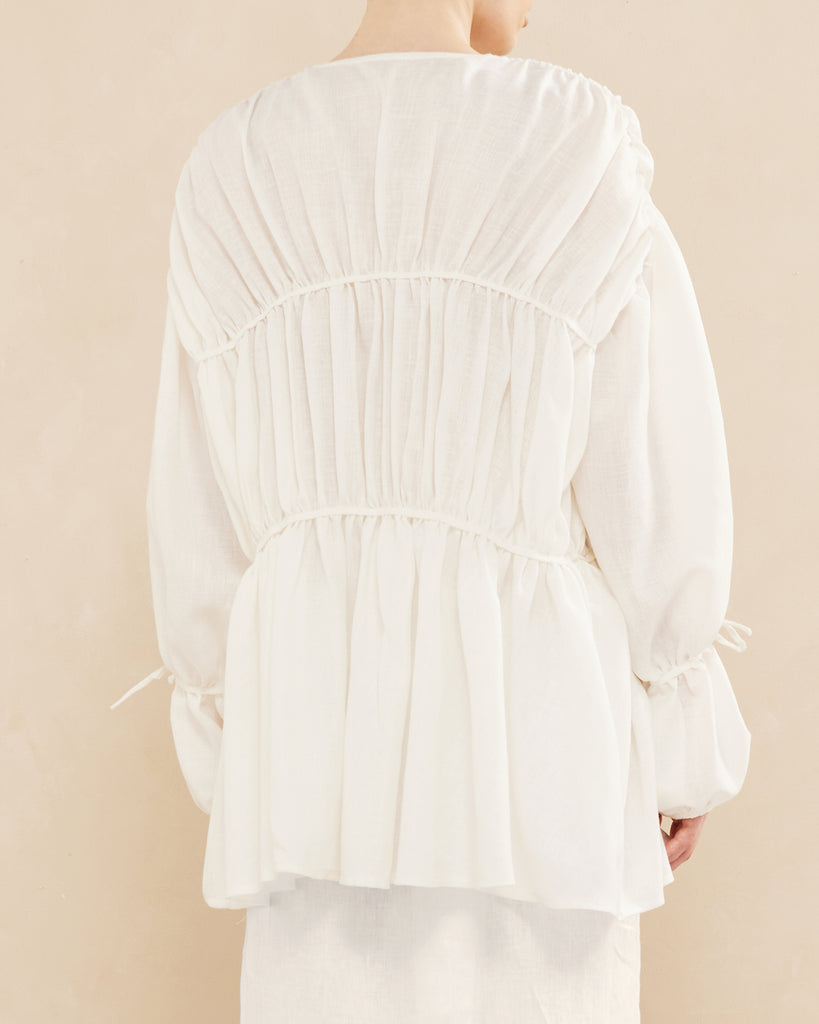 Stylish set with a ruched top and a coordinated skirt, designed for a unique and fashionable appearance.